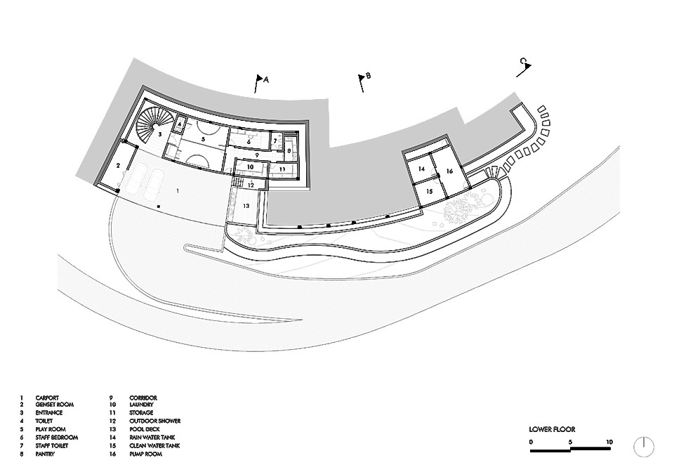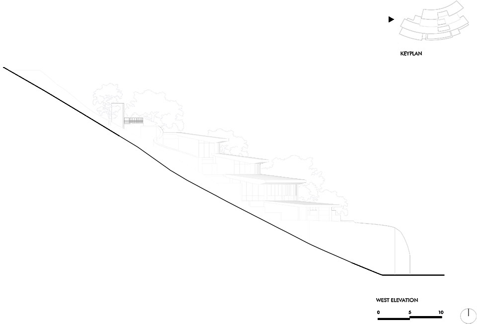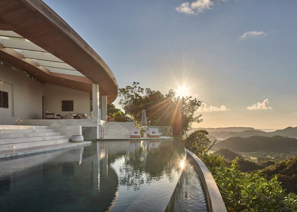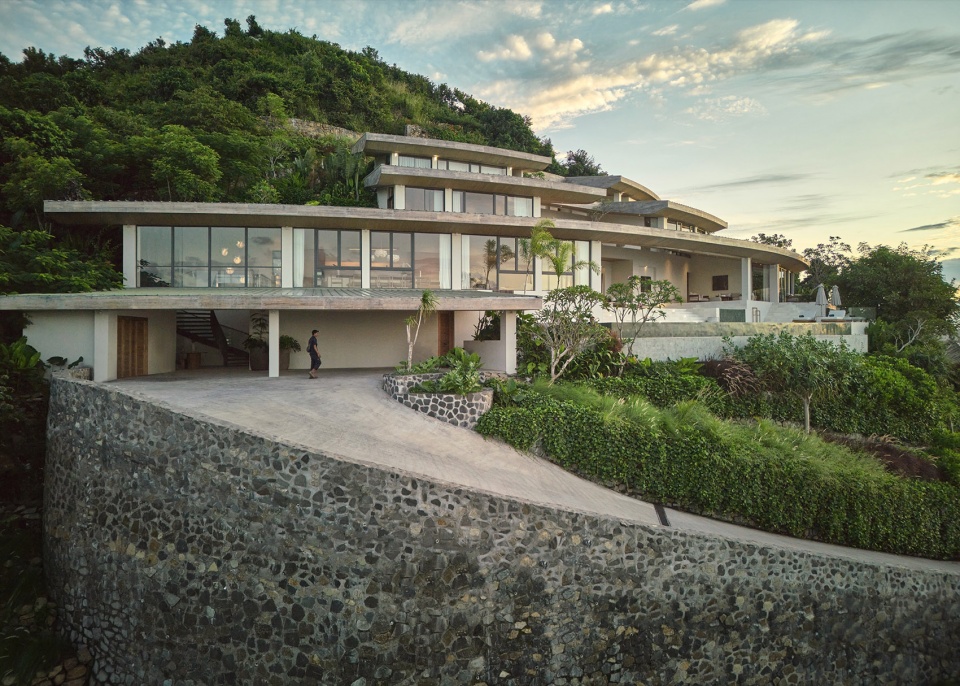 Villa Boë位于Tampah山的山顶,占据了开发区内最高且最陡峭的地块之一。地形本身对设计起到了决定性作用——其陡峭的坡度引导了功能的垂直叠加,同时也创造了一个机会,使建筑更像是一件“地景艺术”,而非传统意义上的住宅。