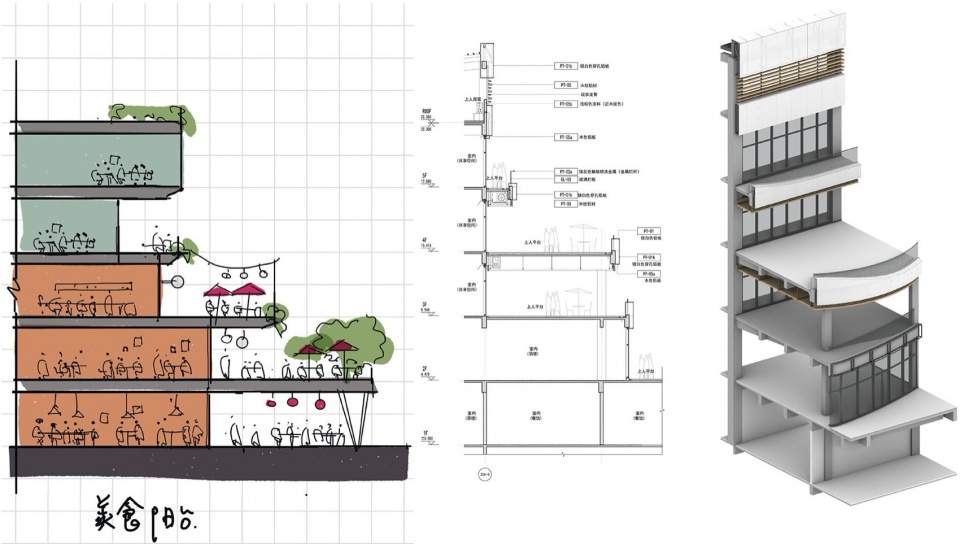 ▼餐饮生活楼墙身剖面,Wall section of the dining & lifestyle building