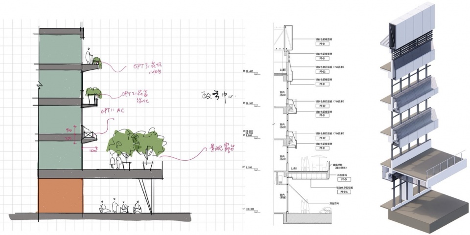 ▼政务办公楼墙身剖面,Wall section of the government office building
