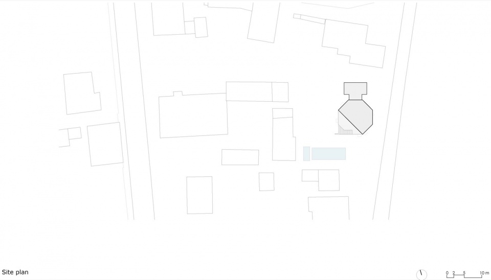 The octagonal plan is not only a formal gesture that subtly detaches – though not entirely disconnects – from the orthogonal grid of recent urban expansion, but also conceptually ties back to 19th-century architectural works in the region, such as the triangular house by architect Croci in Mendrisio.