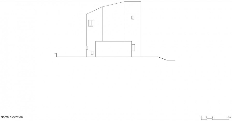体量顶部朝西的切割在视觉上减轻了朝北立面的重量,呼应了该地区历史建筑中常见的垂直性。斜切屋顶成为另一种联系与对话的标识,其坡度与老建筑相称,促进新旧之间的连续性。