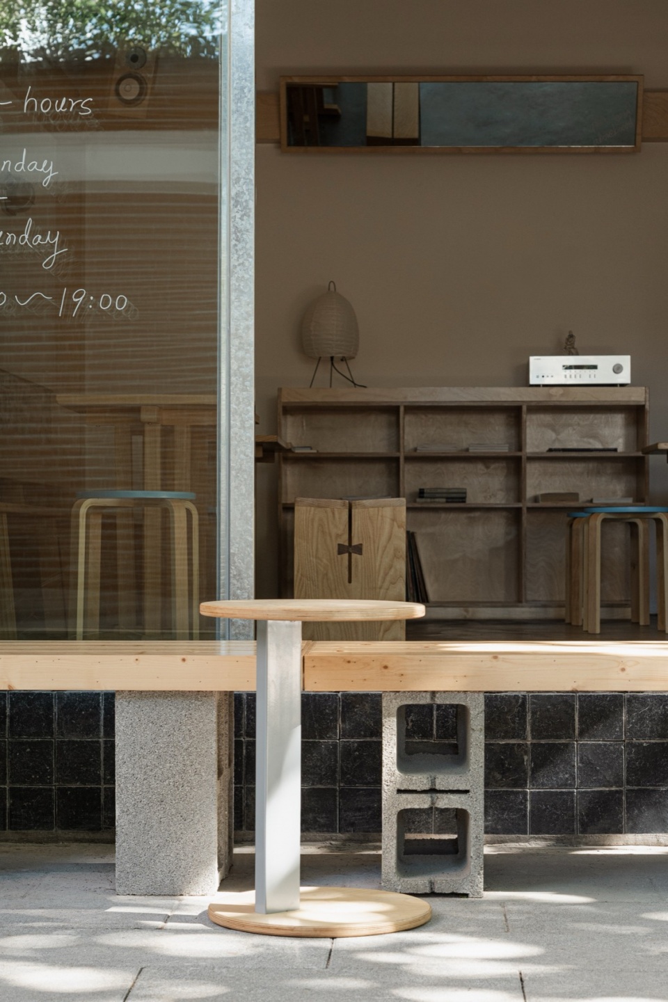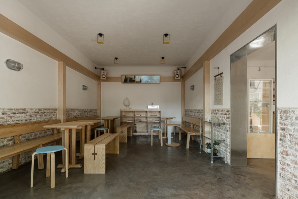 The 40-square-meter unit was originally a traditional residential space with two rooms and a living area. One room was converted into a production kitchen, while the street-facing room and the former living area became the core of the design. Inspired by the traditional Chinese tángwū (main hall)—a central space in the home for family life and social interaction—the project reinterprets this concept as a Community Living Room: a space that bridges production and hospitality, commerce and community.
