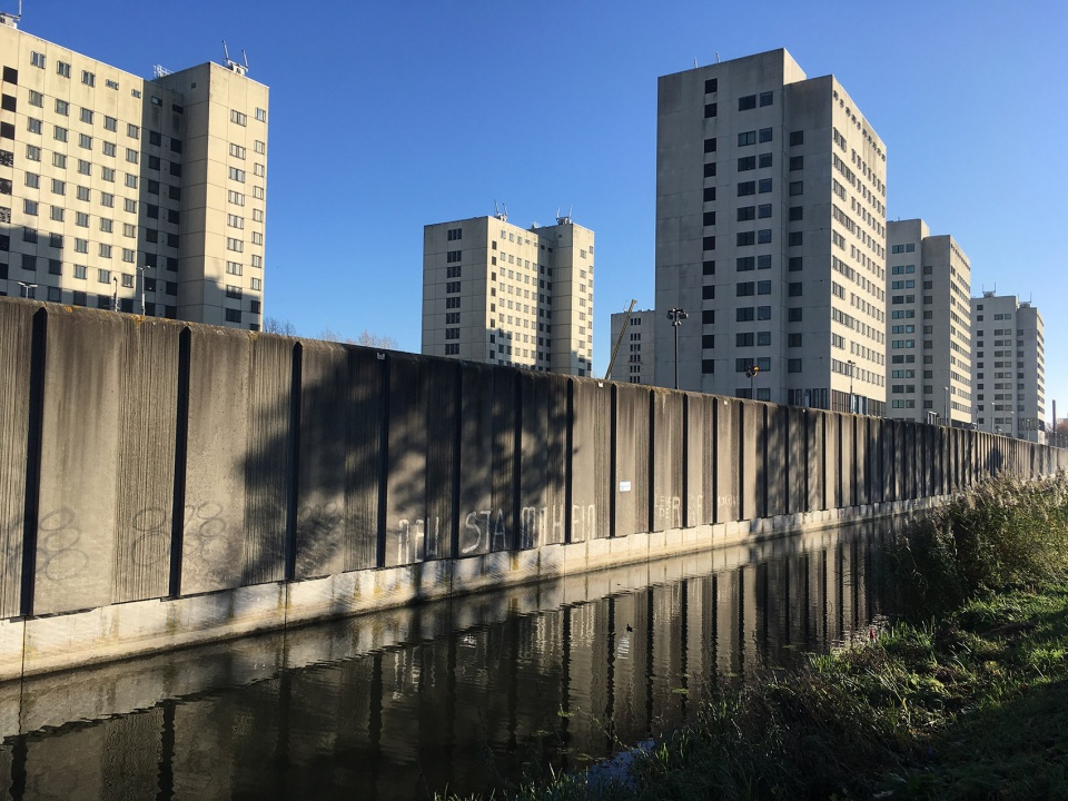 The starting point for the project was provided by the urban-development design by the firms O.M.A., Fabrications, and Lola Landscape Architects. In it, the late-modernist Bijlmerbajes prison complex from the 1970s is being successively transformed into a new urban district with over 1100 apartments. The planning foresees the demolition of roughly 75 percent of the existing, truly desolate building volume. Some important elements, such as part of the prominent prison wall, the central service building, and a prison cell high-rise are, however, retained exemplarily as important cultural relicts. The proposed urban-development project can thus be regarded both as a reinterpretation of the historical prison complex and as a revision of the urban planning of classical modernity. What is put forward is a sort of “Plan Voisin” for the twenty-first century. Taking up the original complex, for the district, a—for Amsterdam—rather untypical, open urban construction with a sequence of nine sculptural high-rise buildings embedded in a green landscape is proposed. The new district forms a nearly car-free enclave with a very spacious public park within the urban corpus of Amsterdam.