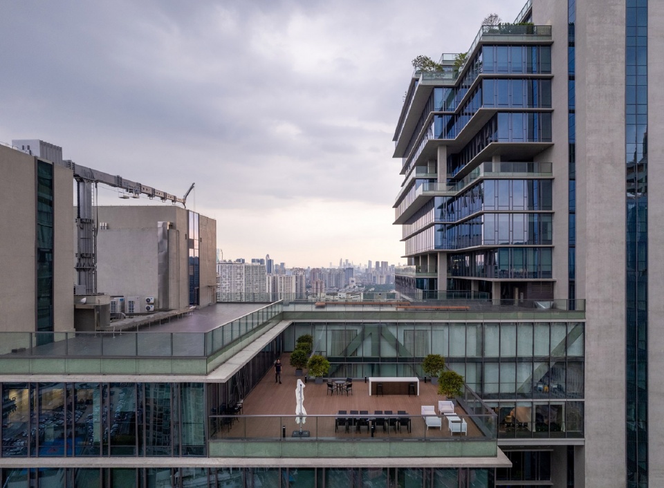这是一栋由层板和挑台交错穿插,垂直分组而成的办公社区。建筑从外观上摒弃了传统高层办公封闭固定的轮廓,将自然和日常生活带回到每一个楼层,随时可达的檐下空间将引发人的情感,创造空间与时间的对话。 工作之余,我们鼓励每一个人走出办公室,来到“社区阳台”,与人,与自然充分交流:当办公楼里的精英与老街坊共享一个垂直村落,这种生活不是精心设计的主题公园,不是乌托邦式的强制融合,而是一种有社群认同的共同体。