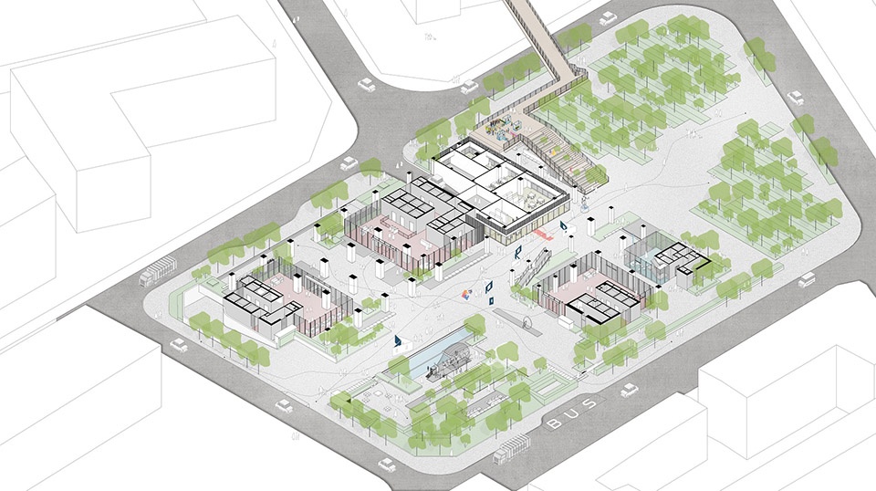Shenzhen is a relatively new city compared to many others, but after more than 40 years of development, the real needs of its residents have enriched the city’s diversity and charm. The project is located in Meilin, which was originally named after its mountains covered with red bayberry trees. Situated on the north side of Shenzhen’s glamorous central axis, it represents the city’s “B” side. Despite its high construction density, Meilin still maintains a rare sense of ease and relaxation in Shenzhen. Here, “new” and “old” are not opposites but rather the collision of two different urban DNAs – is there a “new scale” between the “small scale” (streets, arcades, shops) of old communities and the “large scale” (skyscrapers, expressways, tech parks) of new Shenzhen that can allow them to coexist?