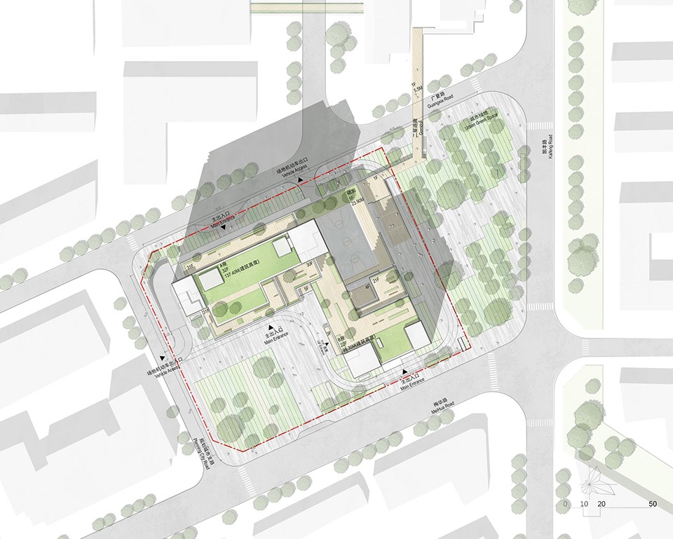 深圳市相比很多城市而言是一座新城,但经过40余年的发展,市民的真实的需求,丰富着城市多样性与魅力。项目位于梅林,梅林最早因为漫山遍野的杨梅林而得名,位置在光鲜繁华深圳中轴线北侧,它是城市的“B”面,是中心区的“里子”——充满生活烟火气息与社区感,虽然建设密度很高,但仍身具深圳难得的悠然自在与松弛感。在这里“新”与“旧”并非对立,而是两种不同城市DNA的碰撞——老社区的“小尺度”(街巷、骑楼、街铺)与新深圳的“大尺度”(摩天楼、快速路、科技园区)之间,是否存在一种“新尺度”,能让两者共生?
