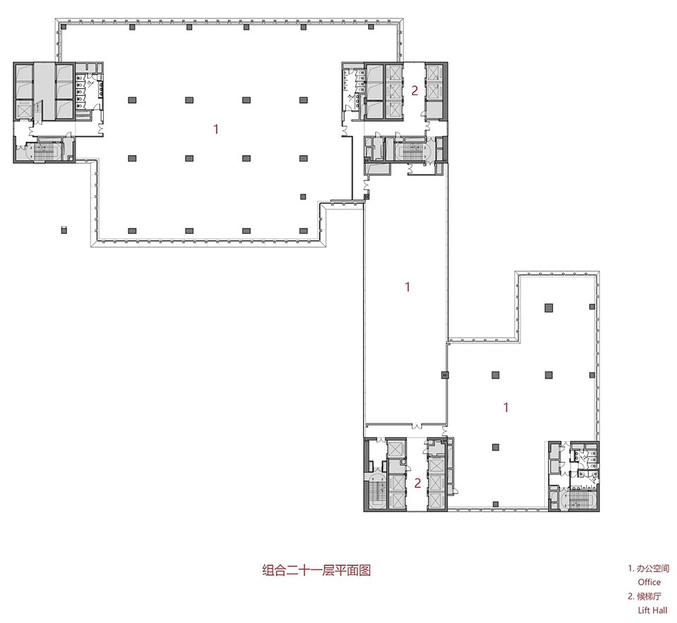 ▼A座十六层平面及B座标准层平面,Building A 16th floor plan and Building B typical floor plan