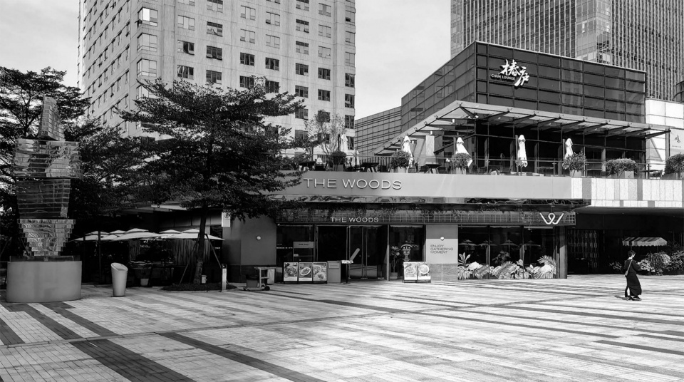 关于设计的善意。初次见面,被甲方告知要先毒死左侧这棵树,才能利用侧面空间放置‘苹果仓’以增加客座数。是言之凿凿的务实需求,不然客座数不够经营上势必会出现问题,甲方小姐姐悄悄说‘已经和物业打好了招呼’我们看着这棵有“身份编码”的大树在深圳的风中摇曳,洒下光影斑驳,我们心想,树是不能死的,客座数也是需要满足的。