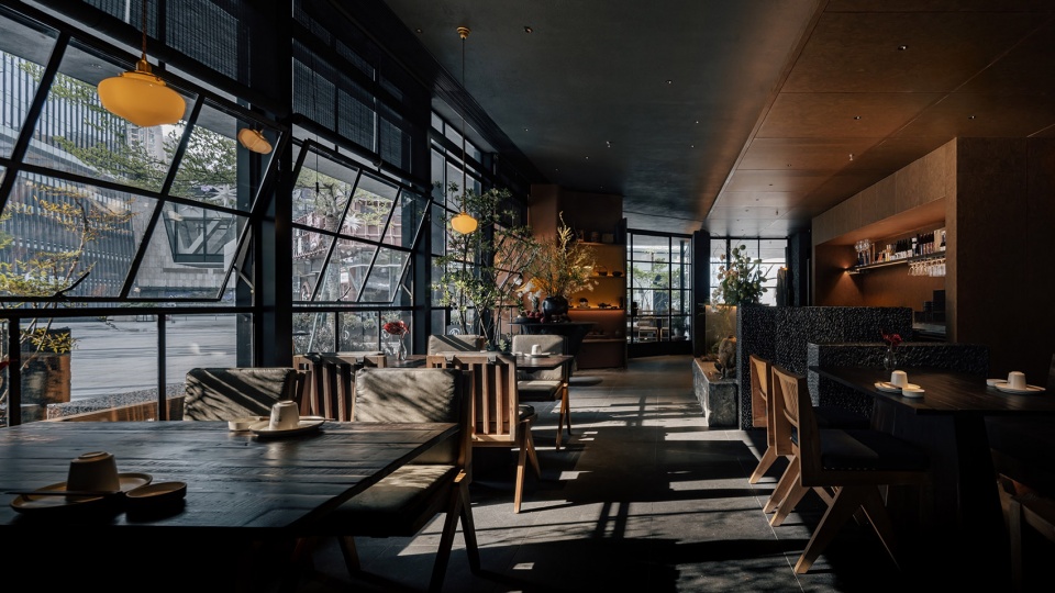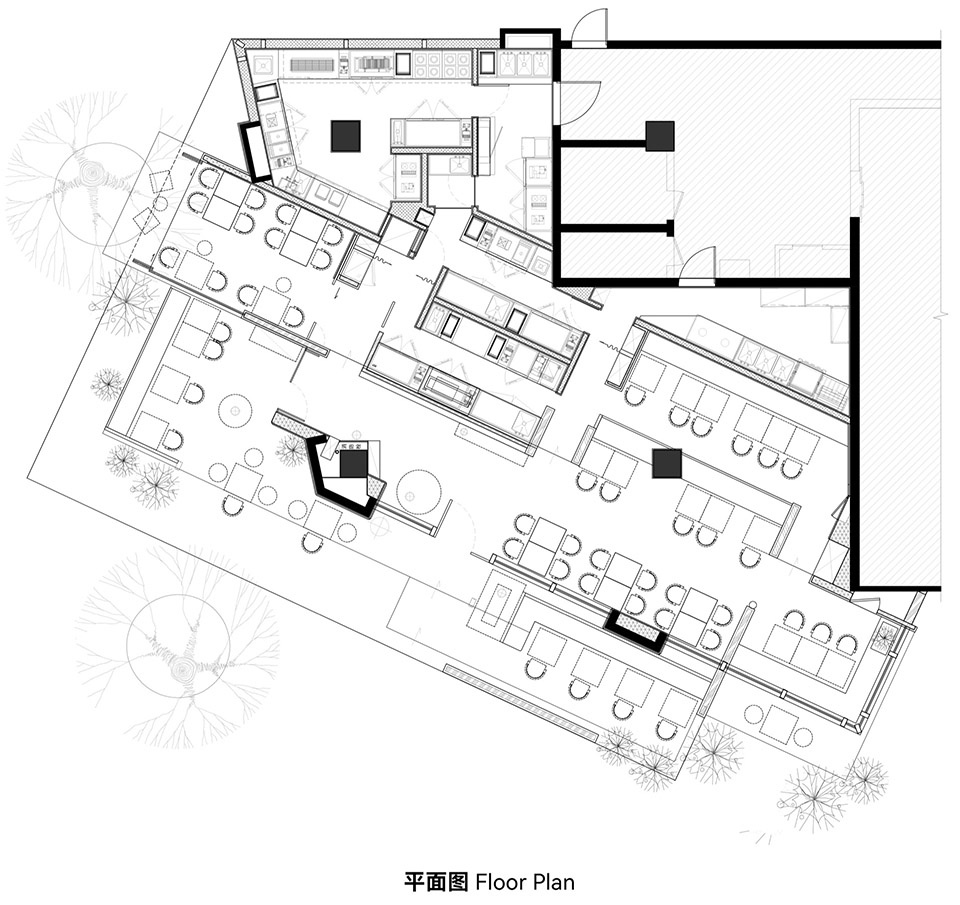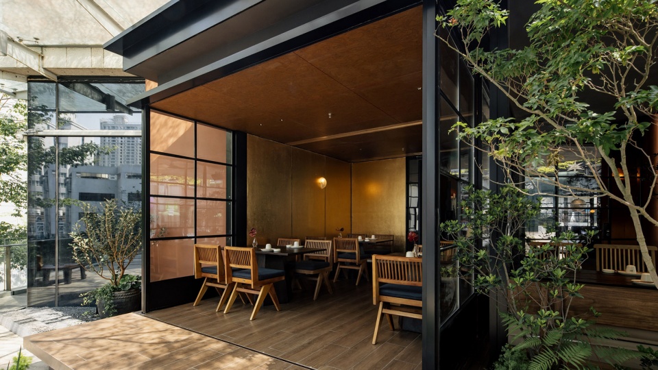 两个‘匣子’的叠级穿插,让客座数极致压缩,且层级丰富。可临窗感知日光,可在檐下落座,杂木自然环绕,也可在包间内一同举杯。在不同情境下有不同的体感,常来常新,而这些树,帮助我们完成想要的松弛和自由。
