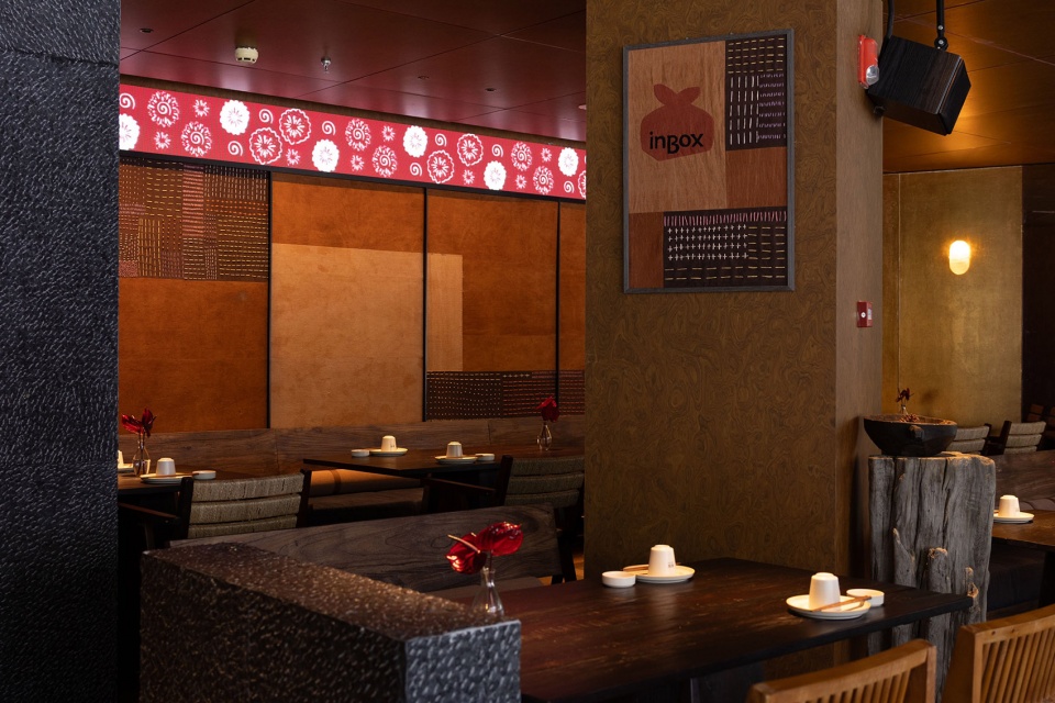 匣倍Inbox日风食集,以日式料理为核心,融合寿司、刺身、铁板等多种品类的全品类多场景集合日料品牌,以「游赏日风,加倍惊喜」为初衷,融合寿司、刺身、铁板、烹物。从“匣”的珍藏、精致和惊喜感出发,臻选食材与匠心技艺,以现代融合的创意视角,碰撞、解读、新叙日式料理的纯粹。在一种在特定的时间空间内,感受美景、体味风物,并从中获得心灵愉悦的过程和体验的过程。多重交错的“匣”结构。移步换景层层推进的游赏体验。