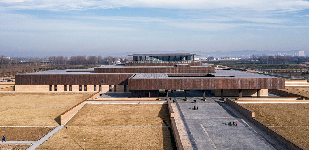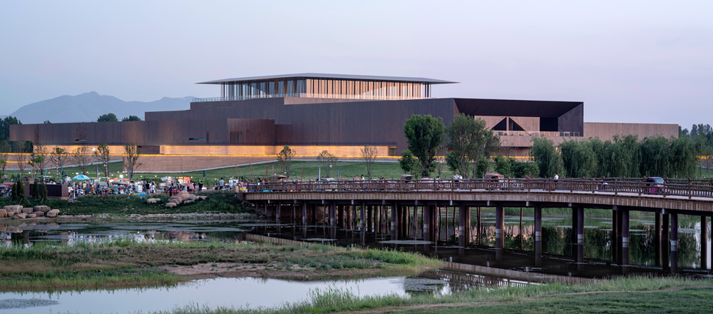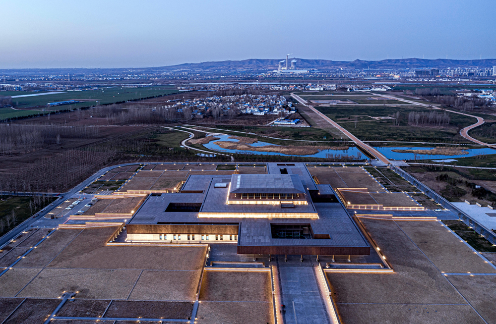 The site of the museum used to be the flood detention area of the Yiluo River. In view of the flood control problems caused by the low-lying site, the benchmark elevation of the museum is set according to the elevation of 118 meters of the highest flood level in history. Slope protection is set around the museum, and micro terrain processing is used to closely integrate the building with the surrounding landscape. The ups and downs of the terrain hide part of the volume of the museum, making the site environment and architecture become an integrated whole, and building a unique image of the site museum.