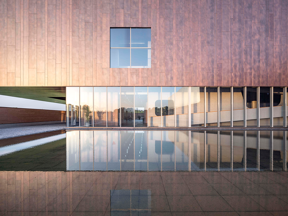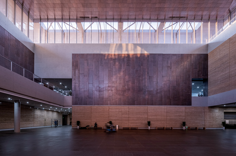 Adopting the design strategy of integrating architecture, interior and landscape, red copper curtain wall and hand rammed earth are two important material clues throughout. Copper and earth are two materials closely related to Erlitou site: the earliest bronze workshop and bronze ritual vessels were found in Erlitou site; The foundation sites of dozens of large palaces found in Miyagi district have left traces of rammed earth construction.