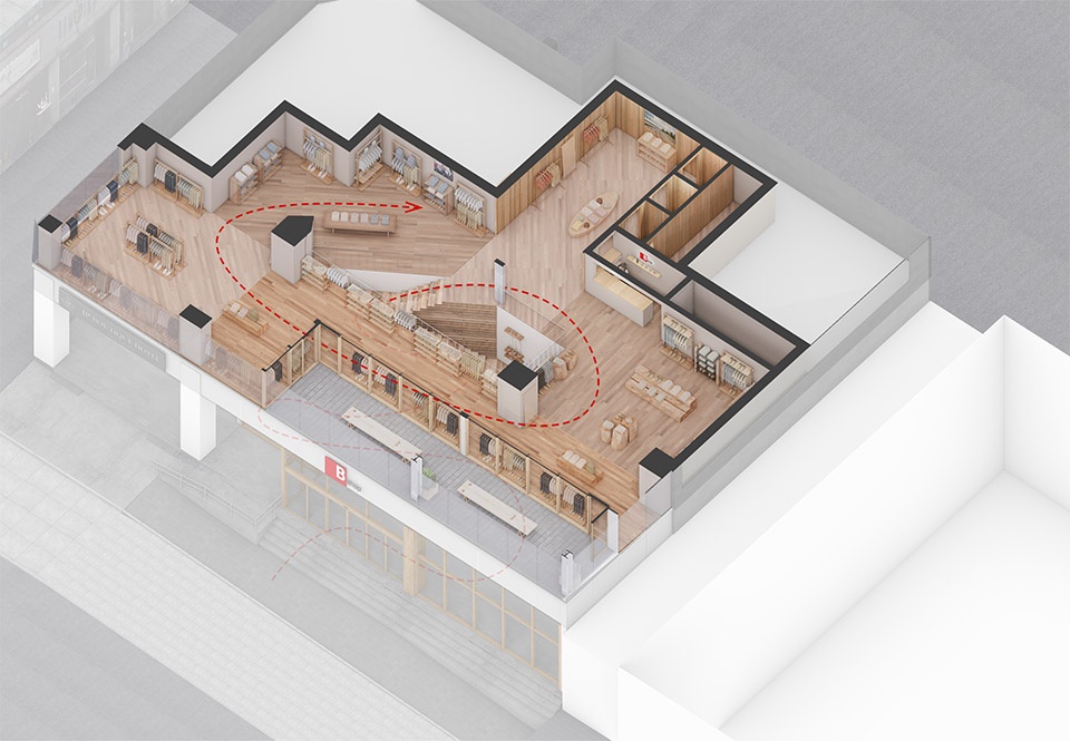Bshop is a fashion collective brand originated from Japan. We have previously designed multiple retail spaces for its affiliated brands, Danton and Orcival. This time, we are responsible for the overall design of Bshop’s first overseas store in Seoul, Korea.