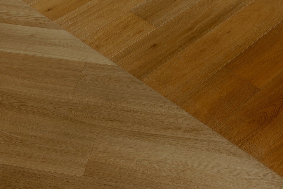 applied three types of wood flooring—each with distinct textures and grain orientations