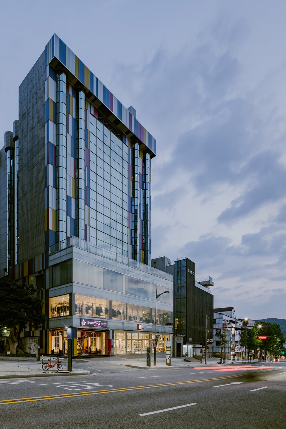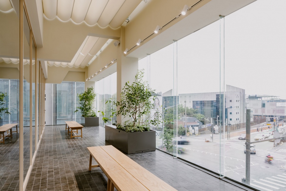 In fine weather, guests can even relax on the balcony and take in the vibrant streetscape of Itaewon, connecting the retail experience to the energy of the city.