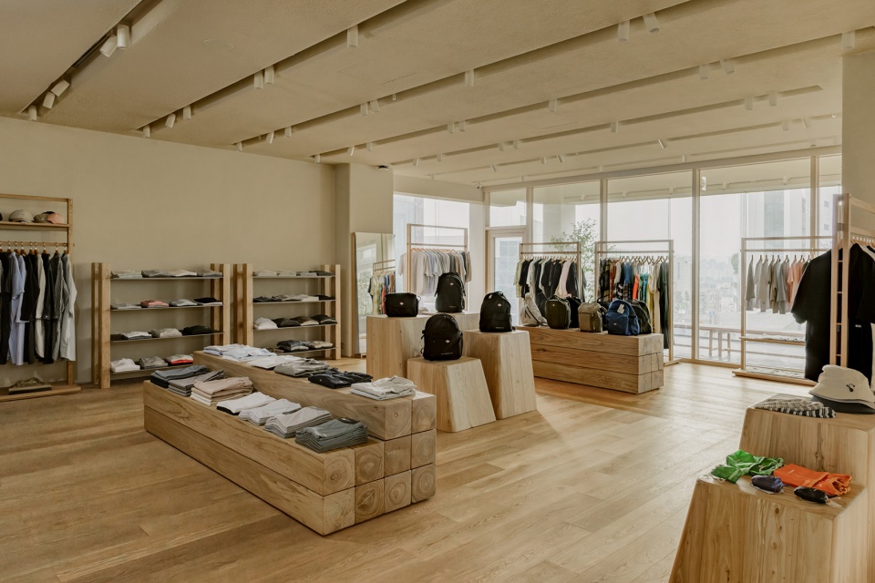 The key design challenge on the first floor was how to naturally draw the flow of people from the vibrant Itaewon street into the store. Centered around the “LABOUR AND WAIT” zone and a pop-up corner, the space was intentionally left loosely arranged to highlight the rich and eclectic character of the merchandise, mostly lifestyle goods. This created a welcoming, approachable atmosphere that encourages spontaneous visits.