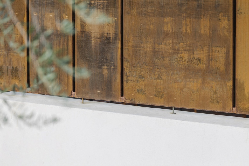 耐候钢——正如艺术家Richard Serra所言,是一种“有生命”的材料,会随时间而变化,并与土地、田野和橄榄树的色彩展开对话。其氧化并非衰败,而是成熟,这一过程将作品与景观紧密相连,色彩变化呼应着春花的红、麦田的赭、树冠的绿与裸土的褐。