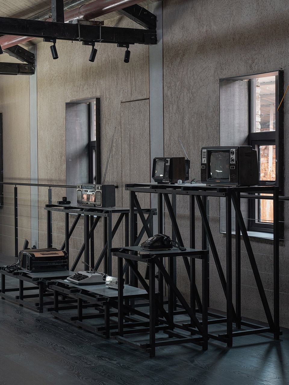 ▼木构展台展示50年代历史物件,The wooden exhibition stand showcases historical items from the 1950s