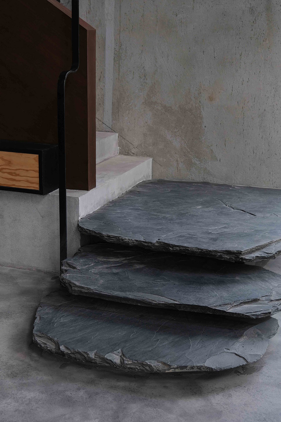 Afternoon sunlight poured through the skylight, casting dappled patterns across the gray walls. It illuminated the wood grain at the table corners while casting sharp, angular shadows on the concrete floor.It is the collision of Japanese aesthetics and industrial design, a dialogue between light and shadow, and a silent dance between time and space.