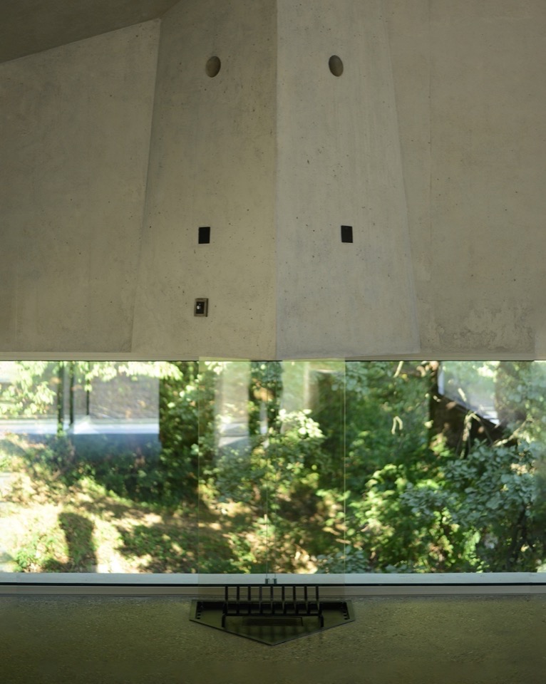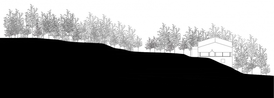 项目垂直展开,顺应坡地逻辑,如同一条向上的居住路径。底部的混凝土基座埋入地下,容纳了卧室和车库。建筑主体随后向上打开,最终抵达一个明亮、开放的空间,安放着起居室:一个面向景观的家庭观景台。