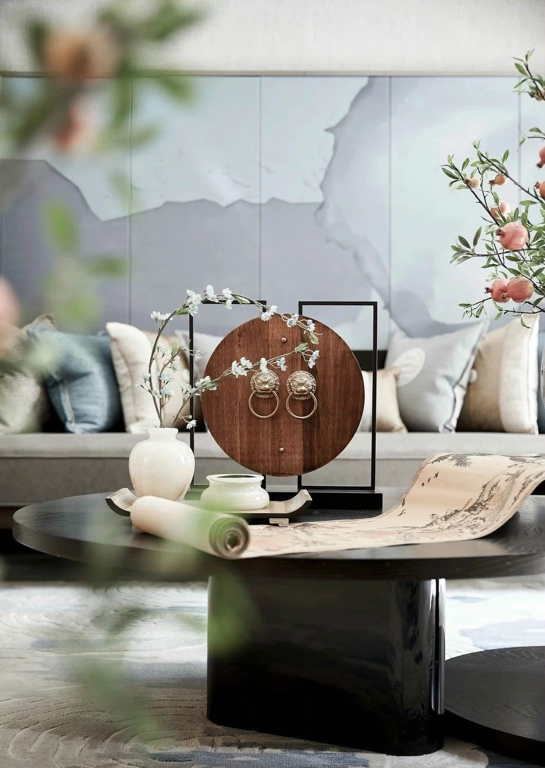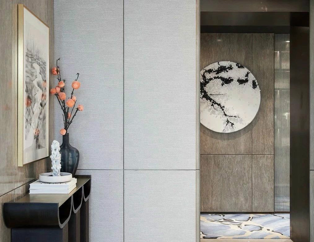 并不是只有大红大紫才能表达新中式的特点,色彩上素雅和谐,在视觉上不会出现大面积饱和鲜艳的色彩,大多以素雅清新的颜色为主,比如白,灰,亚麻色等。使得整个空间更加看起来清爽,通透。