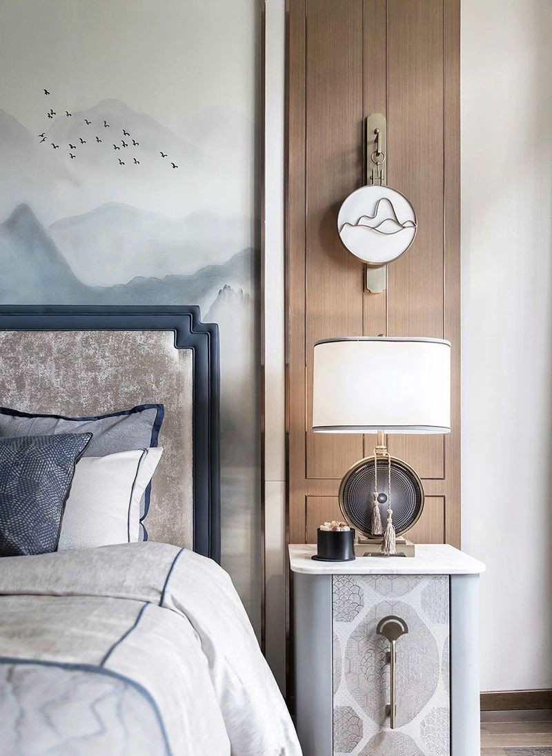 It is not only red and purple that can express the characteristics of the new Chinese style. The color is simple, elegant and harmonious, and there will be no large area of saturated bright colors visually. Most of them are simple, elegant and fresh colors, such as white, gray, flax, etc. Make the whole space look more refreshing and transparent.
