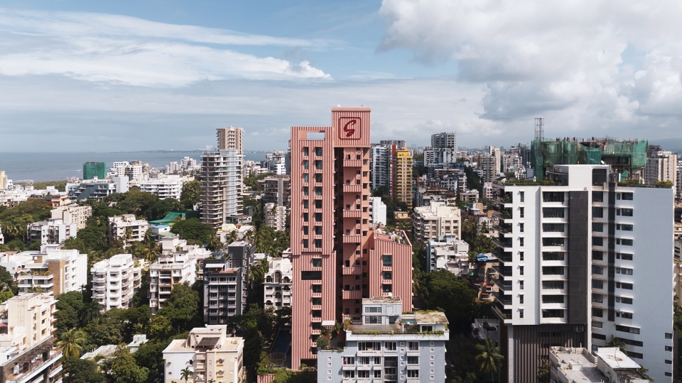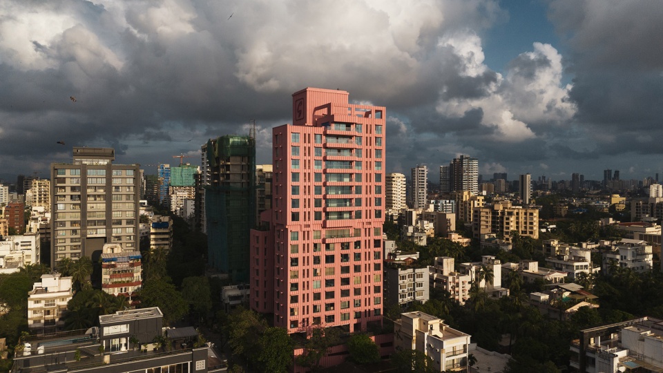 Satguru’s Rendezvous公寓在孟买日新月异的天际线中占据了主导地位。这座城市由严格的建筑规范与规定塑造。该项目为高约300英尺的22层豪华公寓大楼,拥有分层造型与粉色立面,这一设计大胆脱离了孟买城市中无个性的一片灰色塔楼。