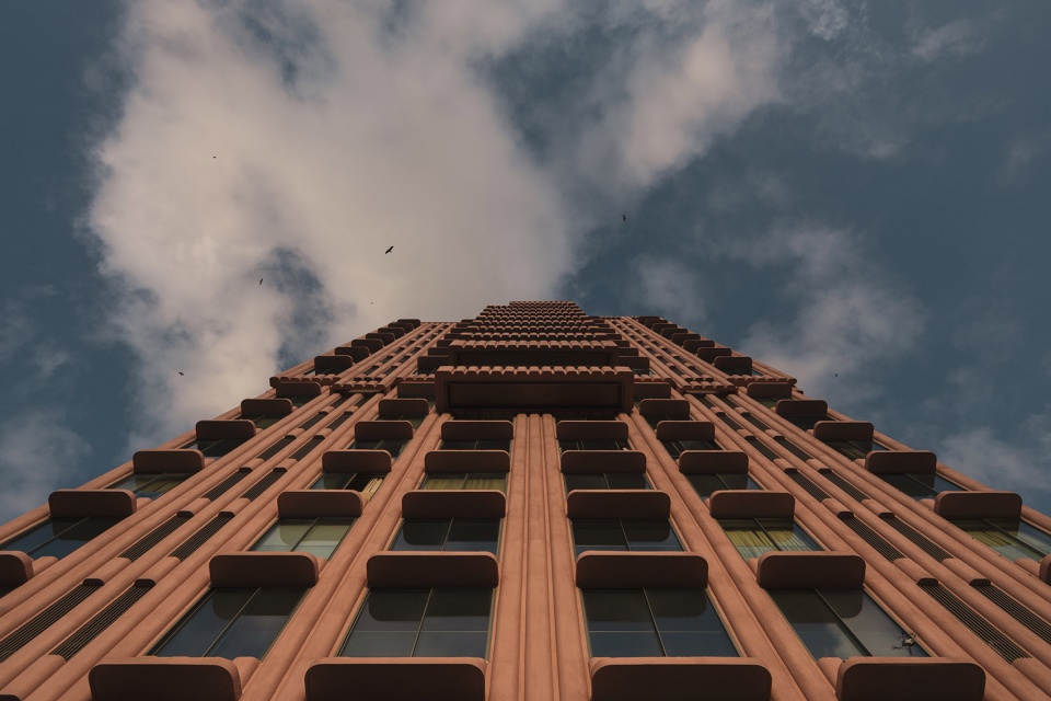塔楼的形态源自堆叠体块的和谐排列。三层高的平台层包含了停车场及设施,如健身中心、游泳池,以及可灵活变换功能的开放空间。平台区设有丰富的绿化、步道和专用的休闲与社区空间,为城市中心提供了一片宁静的绿洲。底层的曲线造型则更新了与街道的连接,创造出一种温和流动的视觉动感。