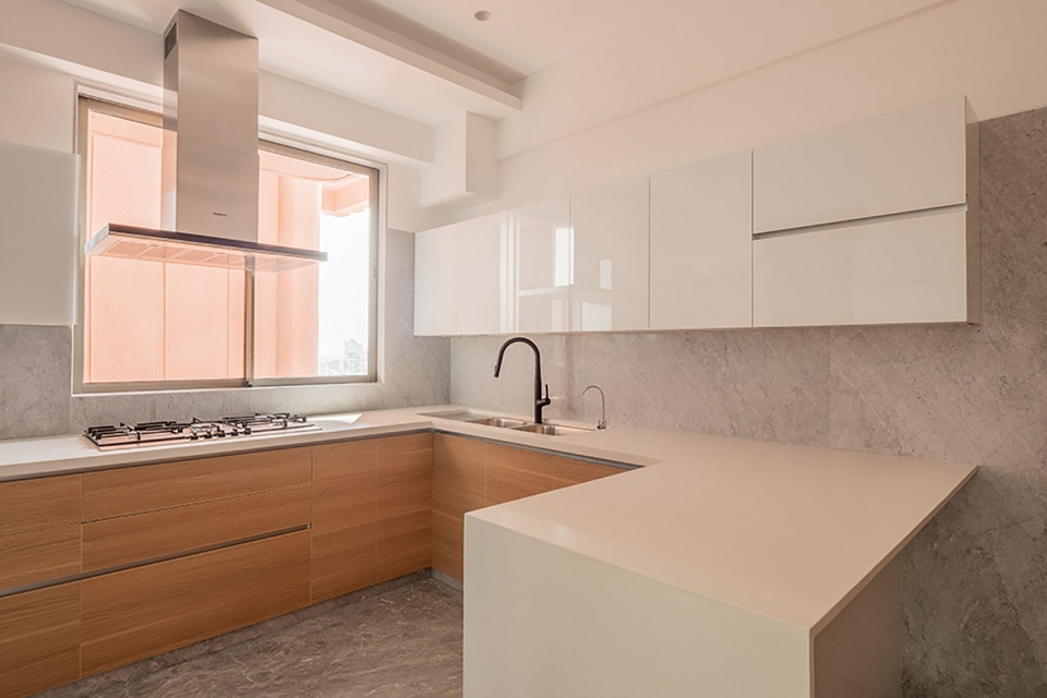 The residential blocks rest above the podium. Existing housing society members occupy the first eight storeys, while the upper levels house new luxurious four-bedroom units with unobstructed views of the city and the Arabian Sea. The building is capped by a sunset deck with sweeping vistas, where residents can unwind while taking in the splendour of the setting sun.