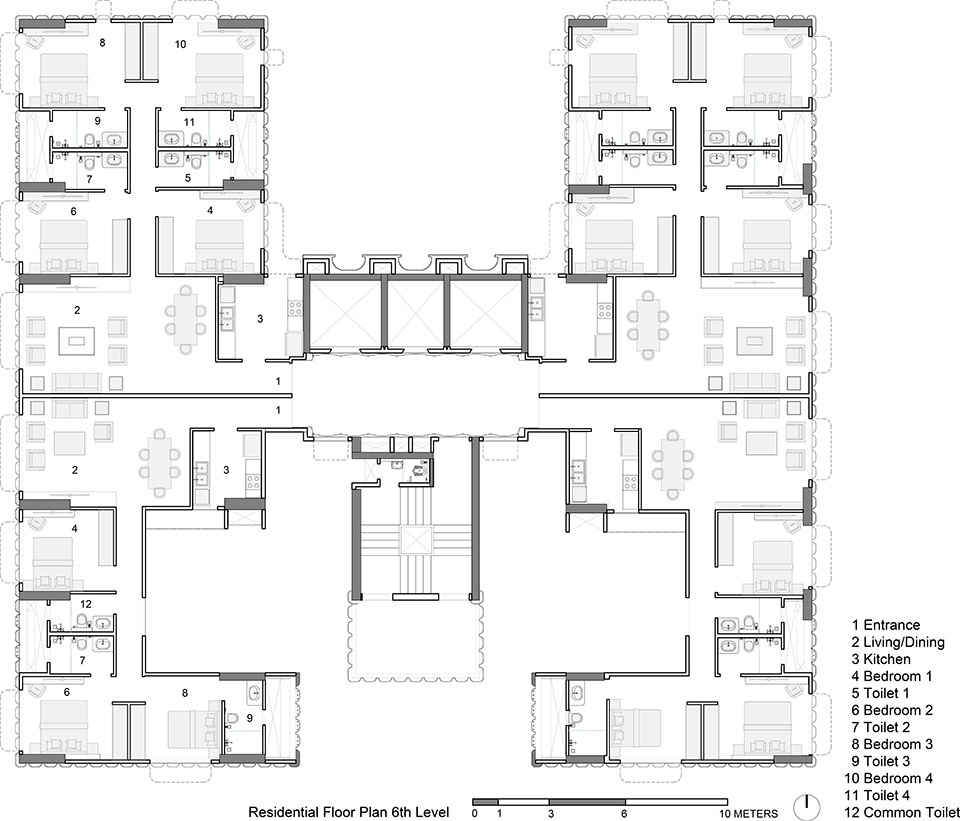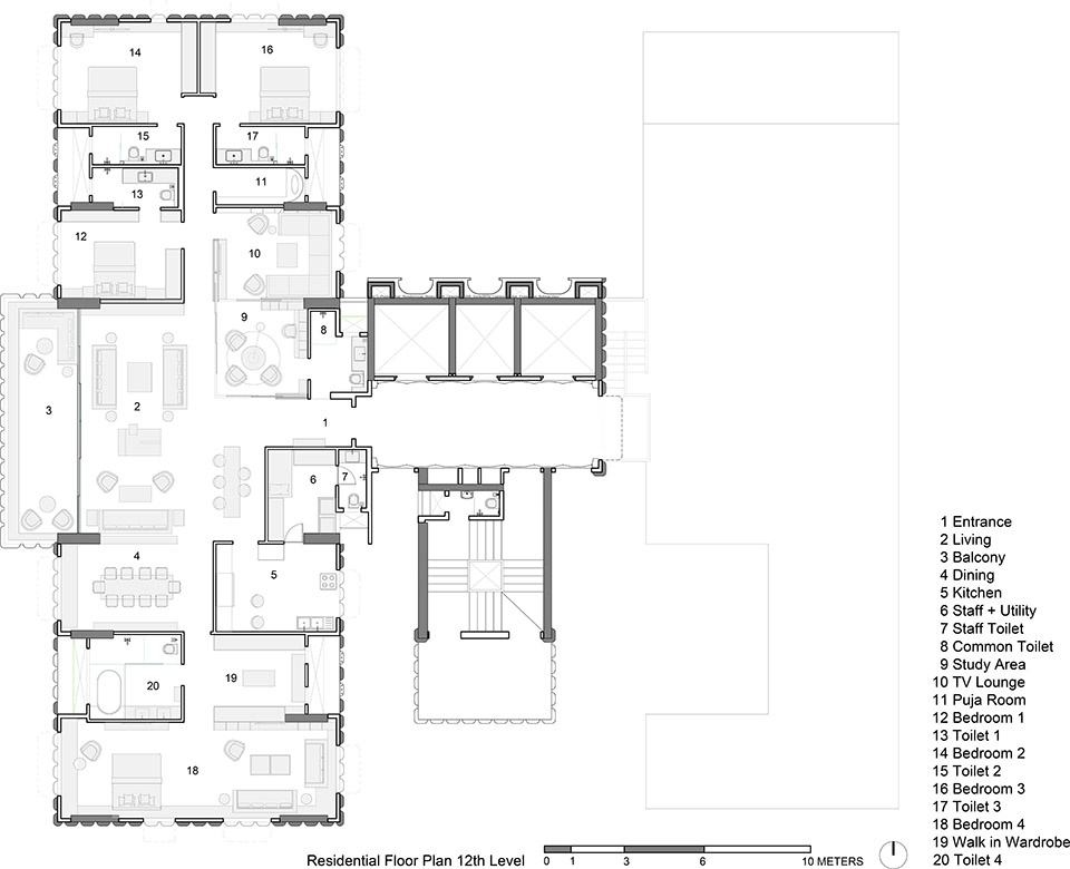 住宅楼座位于平台层之上。现有的公寓社区成员居住在前八层,而上层则提供豪华的四卧室单元,享有无视野阻挡的城市景观与阿拉伯海美景。建筑顶部设有日落平台,提供开阔的视野,住户可在此放松身心,欣赏日落的壮丽景色。