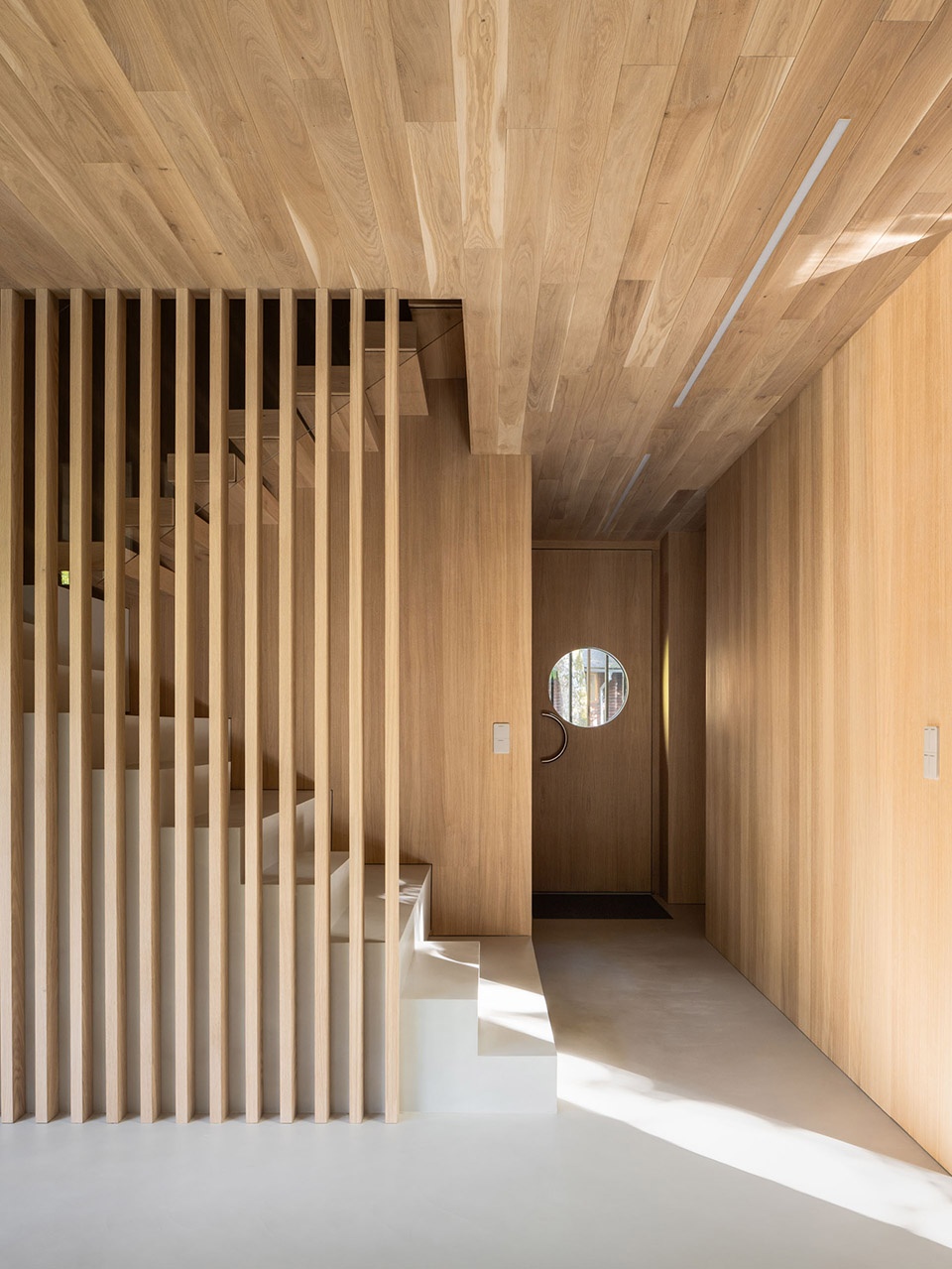▼室内氛围由温暖的木饰面包裹墙壁和天花板,the atmosphere is defined by warm timber veneers wrapping walls and ceilings