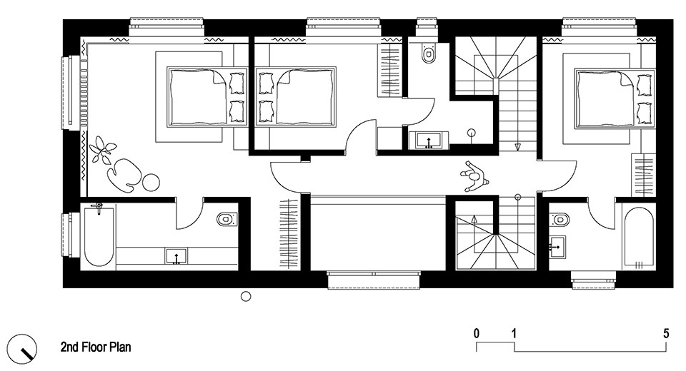 Demänovská住宅体现了山间小屋类型的历史演变。曾经只是用作抵御严寒天气的简易庇护所,已经转变为一个精致的度假胜地。在这里,度假不仅仅是逃避,而是作为一个避难所——远离城市喧嚣、重新连接精神的地方。虽然山间小屋提供在一天辛劳后的安全和休息,但Demänovská住宅将自己确立为其居民心灵景观中的一个固定点,提供心灵、精神和身体的焕新。