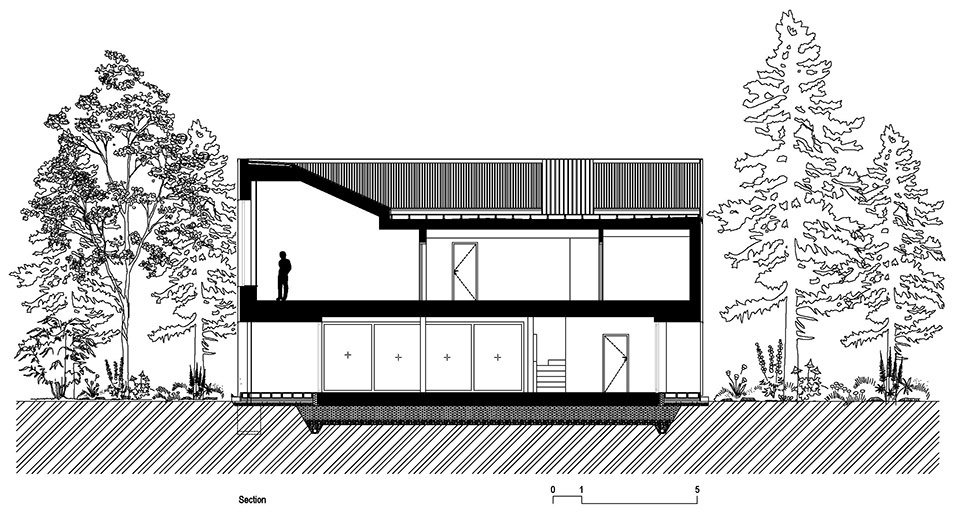 ▼外立面采用传统日本“烧杉”技术处理的木材包覆,The facades of the residence are clad in timber treated with the traditional Japanese technique of Yakisugi