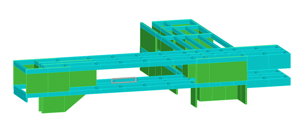 为使空间呈现“悬停”姿态并实现无柱大跨度,建筑顶面与地面均采用密肋混凝土板,构成三维筒体受力体系。竖向荷载由两端的楼梯、其侧墙及纵向交错片墙传递至底部整体筏板;非受力区尽可能通高开设长向大窗,两端配电动开启窗形成对流通风,从而弱化结构体量,提升室内通透度。顶板混凝土反梁整合机电管线,顶面保留清水混凝土肌理。
