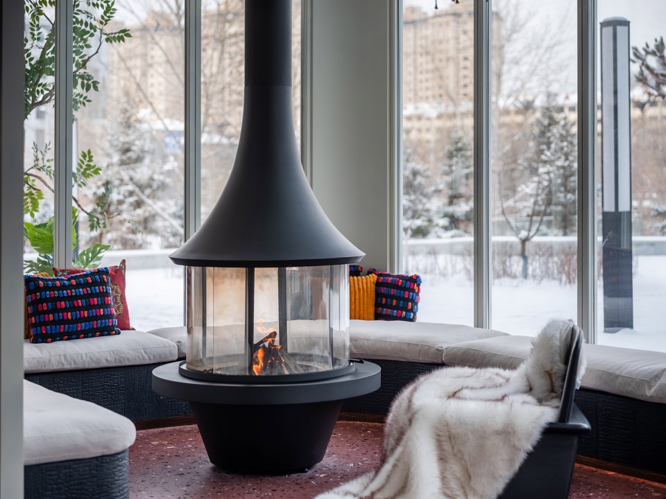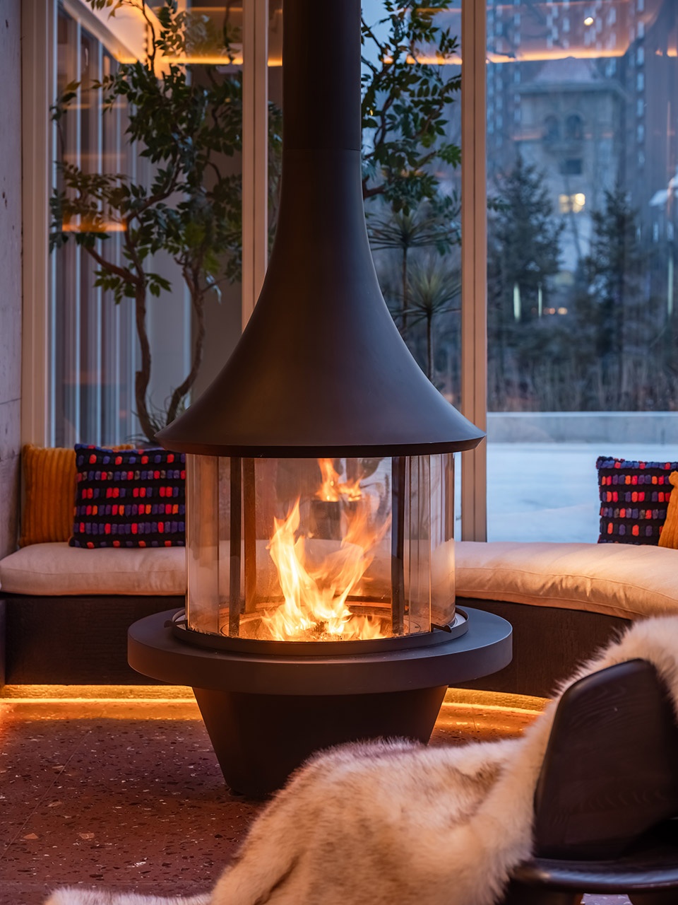 在项目拍摄日,西宁的天空忽然飘起大雪,落雪的松林从西侧照进餐厅,伴着室内的熊熊炉火,清冽与温暖的感受弥漫在空间中,这是西宁这座城市的IM FINE餐厅所独有的特质,在高原的纯净中,有一处温暖、慵懒的角落,等待着食客的到来。雪景带来的空间感受,意味着我们实现了项目的设计初衷:延续品牌空间调性,结合场地外围的松林景观,增添自然属性;回应青海西宁地域特色完成在地化的设计表达。