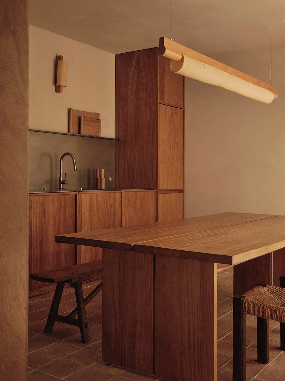 ▼木材、钢材和基于石灰的涂料相结合,the combination of warm woods, terracotta flooring, robust steel