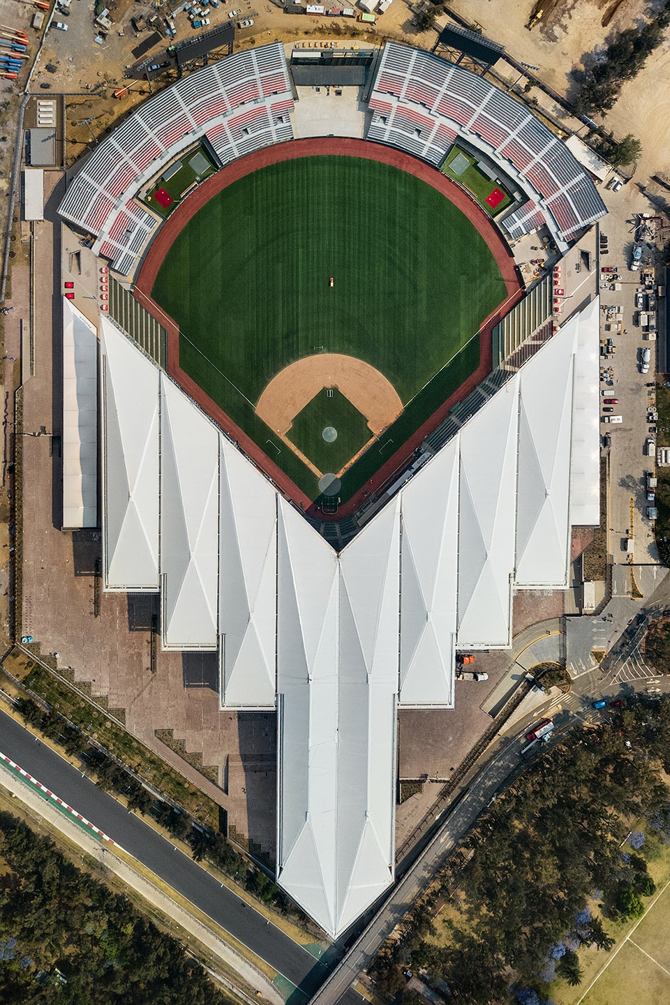 After 16 championships and more than 70 years of history as the leading baseball team of Mexico, Los Diablos Rojos del Mexico has a new home stadium. Designed by Mexican-born architects Francisco Gonzalez Pulido and Alonso de Garay, of Chicago-based FGP Atelier, and Taller ADG based in Ciudad de México; the Alfredo Harp Helú stadium is the country’s largest baseball facility to date with 20,000 seats—a drastic difference from its home team’s previous home, the 5,200-seat Estadio Fray Nano. A baseball aficionado, part team owner, and renowned Mexican businessman and philanthropist, Helú commissioned De Garay, who invited González Pulido to collaborate, to design a world-class facility replete with all of the services and amenities for its team and its followers, but with the grander intention of reinvigorating the sport in Mexico and fostering a sense of community and culture.