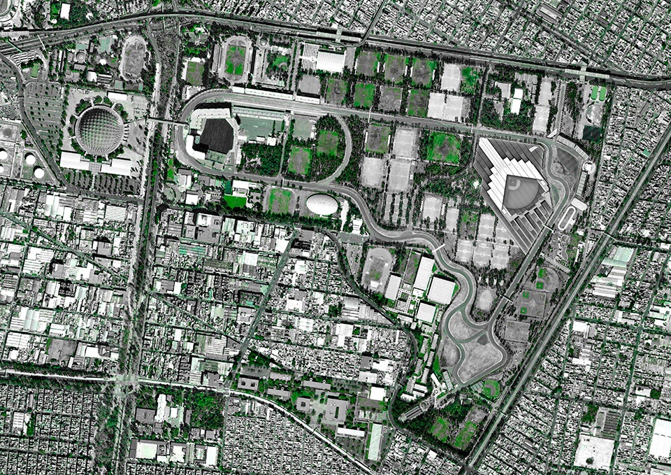 Located adjacent to the Formula One Race Track in the sports complex of Magdalene Mixhuca, the architectural and theoretical undertaking involved melding modern and prehistoric materials to reference Mexico’s history and culture while turning the paradigm of the stadium on its head. The stadium’s roof, which is aptly shaped in the form of a trident spear to reference the home’s team’s devilish name, was a technological feat in itself. The roof was designed by FGP Atelier, the non-public interiors by Taller ADG, and podium seating and public circulation as a collaboration between FGP Atelier and Taller ADG.