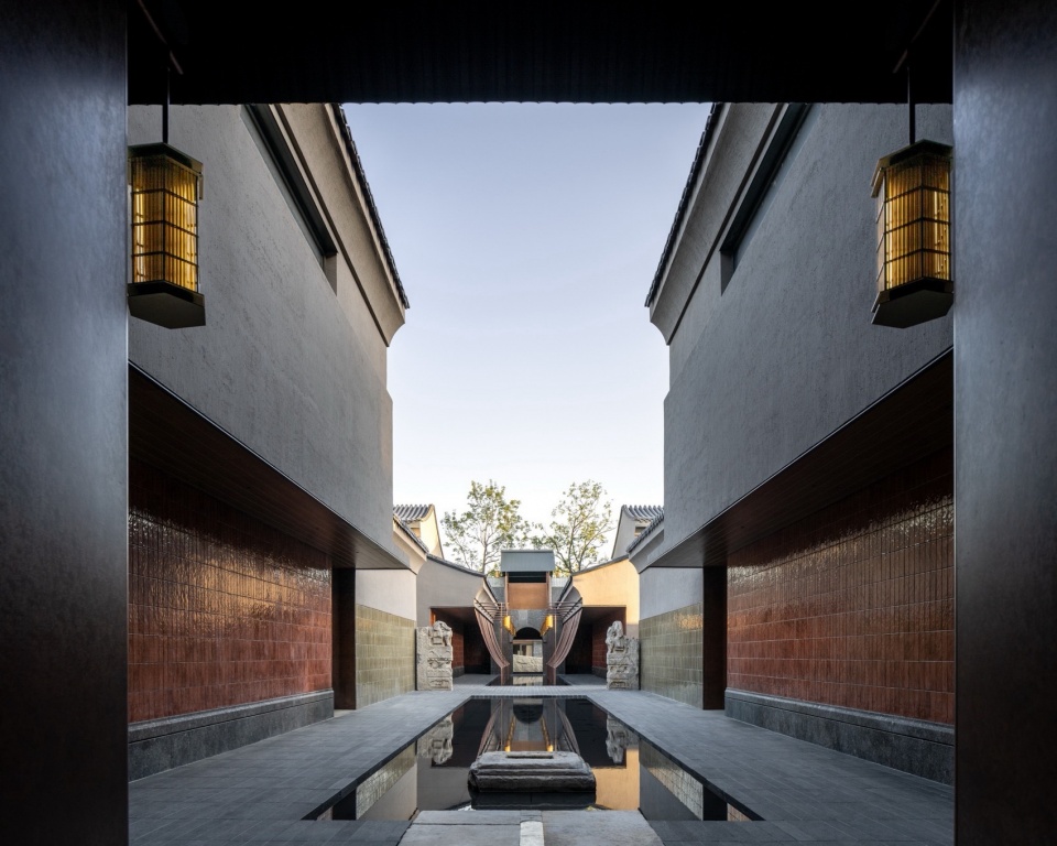 One-third of the site area on the west consists of Ming-Qing ancient houses, which were restored to their original state to be used as heritage suite rooms and restaurant private dining rooms. The new main building is treated as a contemporary courtyard compound inheriting the traditions of Shanxi vernacular architecture. The design extracts the inherent characteristics of Shanxi large courtyards – “majestic exterior, refined interior; five-step penetrating halls; deep, secluded courtyards” – and translates them into a contemporary expression.