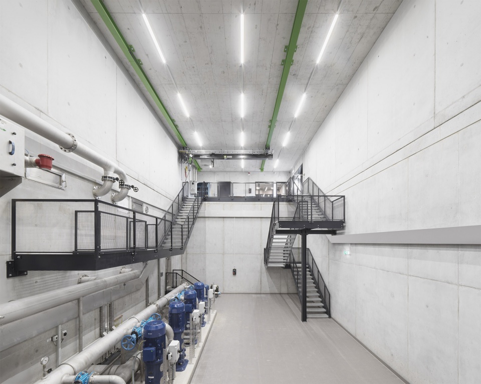 新建筑除包含垂直滤井外,还设有深水池、增压系统、控制与开关装置,以及备用电源系统。除了地下水取水功能外,该建筑还确保与邻近城镇洛豪(Lochau)的紧急供水连接。