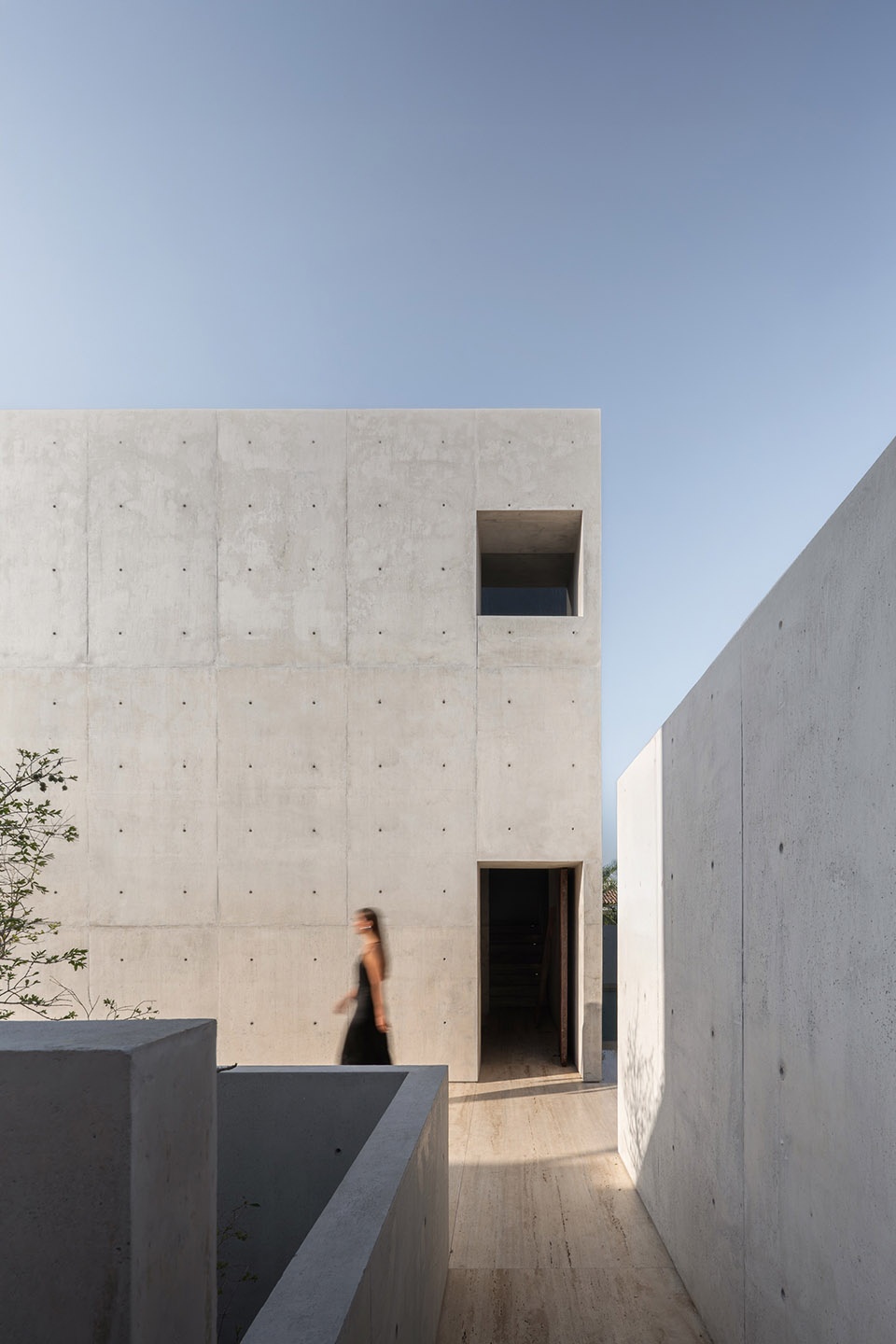 And that is what we tried to do. In a neighborhood with no remarkable views, except for a tree- lined plaza that offered shade and breeze, we decided to orient the architecture toward that freshness. But we did not do so frontally. We avoided large glazed surfaces that might intensify the heat. Instead, we proposed an oblique, angled relationship that allows the presence of the plaza to be sensed without being fully exposed to the heavy sunlight. The act of dwelling is framed indirectly, as if the house were observing at a diagonal, modestly—letting only the wind and the fragrance of the not-so-distant sea pass through.
