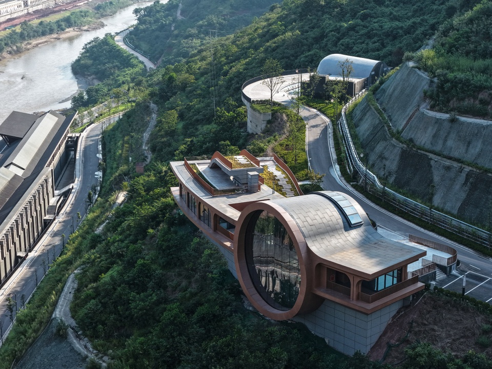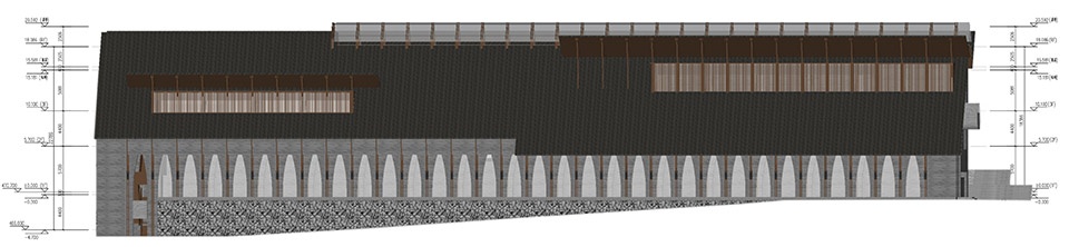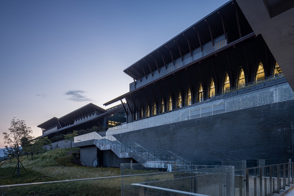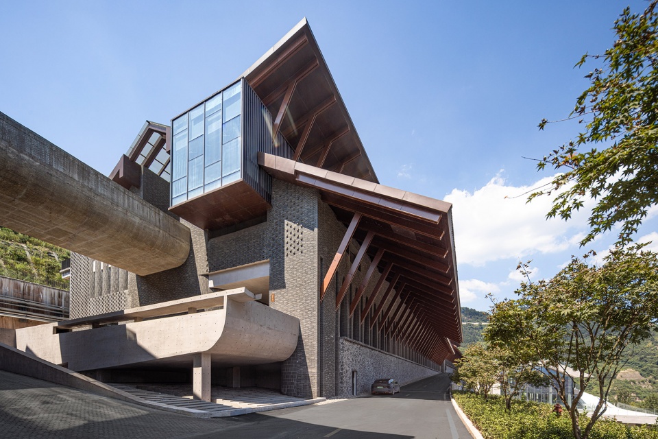 Located on the mountainside, the Reception Hall and Storage Cellar serve as the endpoint and highest point of the entire tour sequence – a “vessel of time” facing the future.