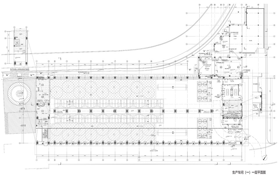 ▼80年代生产车间一层平面图,ground-floor layout plan of the production workshop in the 1980s