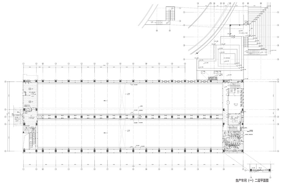 ▼80年代生产车间二层平面图,Second-floor layout plan of the production workshop in the 1980s