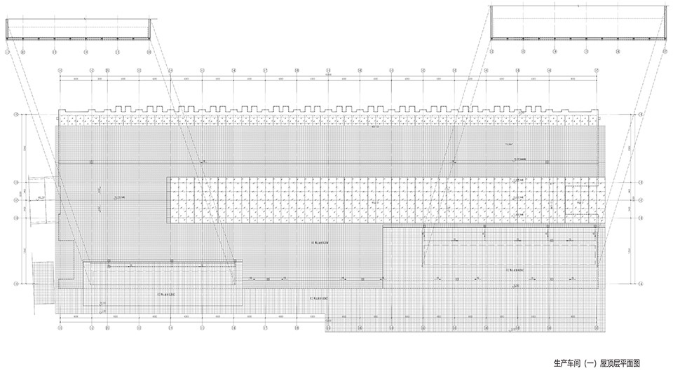 ▼80年代生产车间屋顶平面图,1980s production workshop roof plan