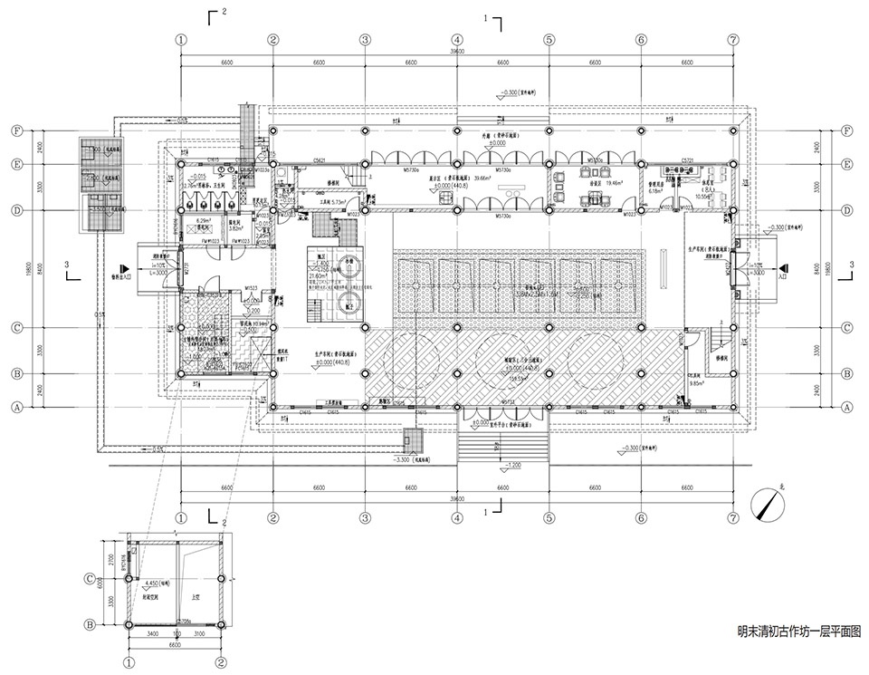 ▼明末清初古作坊一层平面图,Floor plan of an ancient workshop from the late Ming and early Qing dynasties