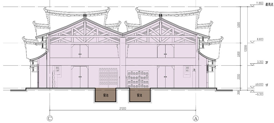 ▼明末清初古作坊剖面,Section of an ancient workshop from the late Ming and early Qing periods