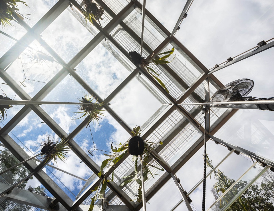 这座亭阁通过其独特的材料运用及对环境的框景方式,在植物园中营造出与众不同的体验。作为一个完全自给自足的生态系统,它不仅引导参观者思考如何以更可持续的方式生活,也促使人们反思维系脆弱物种生存所需的条件,以及在未来维系我们自身脆弱生存所可能需要的条件。