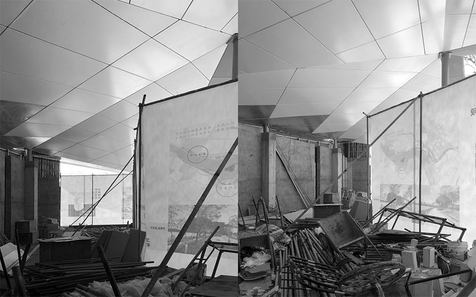 We introduced a fixed triangular modular into the site, which had previously been reduced to a cluttered storage area for construction waste. This system creates continuous, uniform yet flexible units, enriching spatial layers and forming a winding, dynamic exhibition flow. It also provides an efficient and straightforward method for spatial organization during the short construction period.