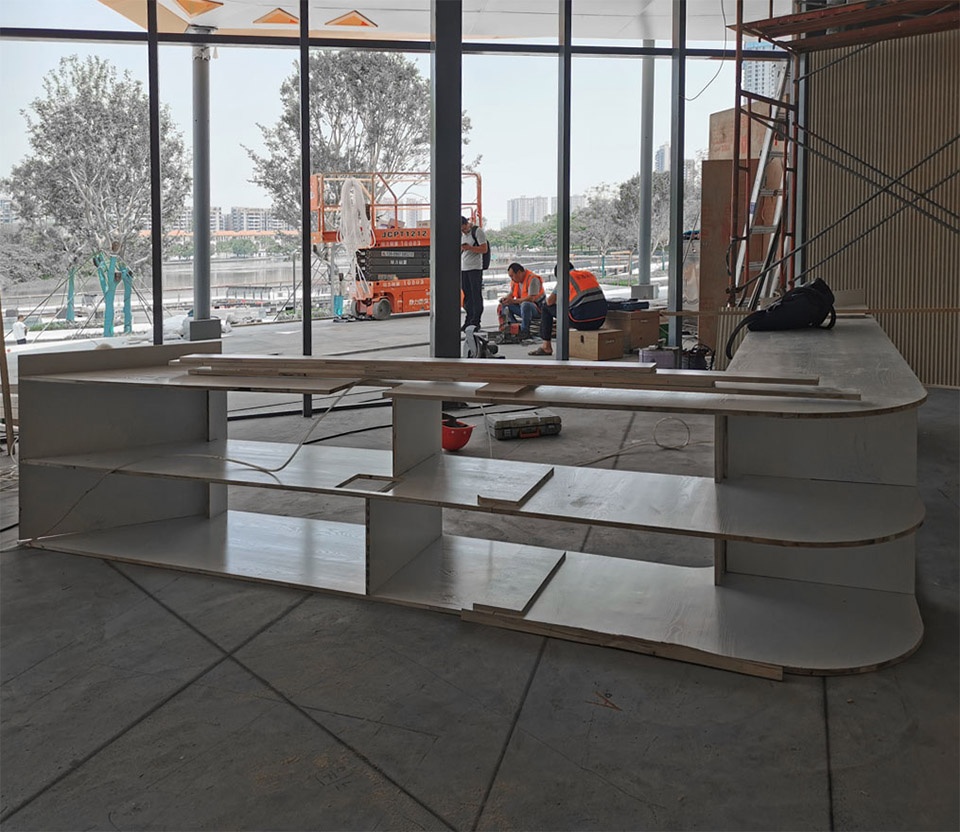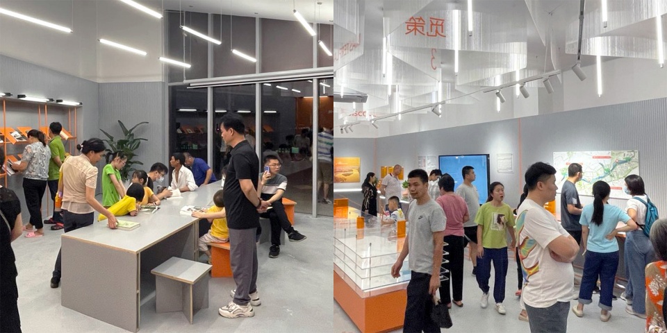 Beyond these four sections, the exhibition also features two interactive installations: “Vision” and “Participation”, where visitors can explore photographs documenting the construction of the Three Rivers Six Banks waterfront. Visitors can also help shape the area’s future vision by participating in playful evaluations or sharing additional images. The reading space is furnished with flexible, customizable small-scale furniture, tables, chairs, and projection equipment, supporting lectures, screenings, and sharing sessions, and providing versatile public-use scenarios within the exhibition. The space also includes a continuously updated “Documenta” section, featuring a curated selection of publications ranging from the historical and cultural development of the Pearl River Delta and its industrial heritage to the ecological resources of the Pearl River basin.